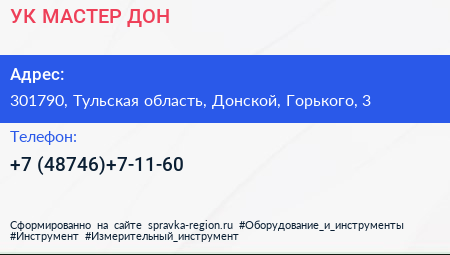УК МАСТЕР ДОН по адресу 301790, Тульская область, Донской, Горького, 3 в дальнейшем Организация, размещена в следующих категориях:
