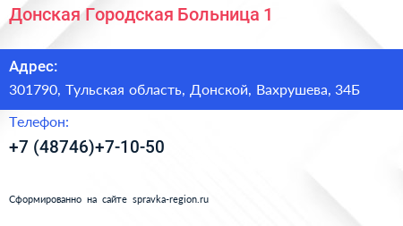 Донская Городская Больница №1 по адресу 301790, Тульская область, Донской, Вахрушева, 34Б в дальнейшем Организация, размещена в следующих категориях: