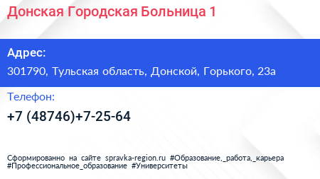 Донская Городская Больница №1 по адресу 301790, Тульская область, Донской, Горького, 23а в дальнейшем Организация, размещена в следующих категориях: