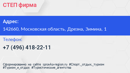 СТЕП, фирма по адресу 142660, Московская область, Дрезна, Зимина, 1 в дальнейшем Организация, размещена в следующих категориях: