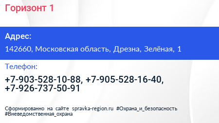 Горизонт-1 по адресу 142660, Московская область, Дрезна, Зелёная, 1 в дальнейшем Организация, размещена в следующих категориях: