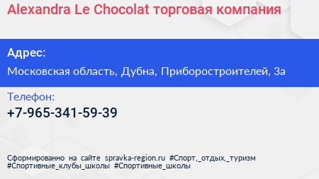 Alexandra Le Chocolat, торговая компания по адресу Московская область, Дубна, Приборостроителей, 3а в дальнейшем Организация, размещена в следующих категориях: