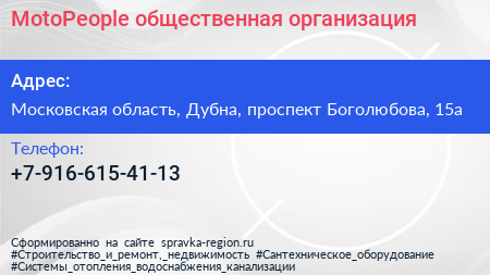 MotoPeople, общественная организация по адресу Московская область, Дубна, проспект Боголюбова, 15а в дальнейшем Организация, размещена в следующих категориях: