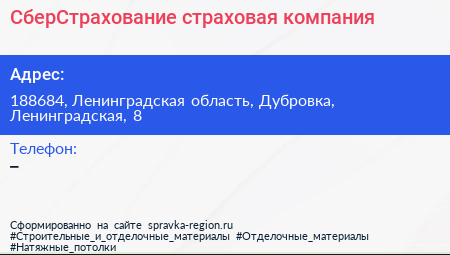 СберСтрахование, страховая компания по адресу 188684, Ленинградская область, Дубровка, Ленинградская, 8 в дальнейшем Организация, размещена в следующих категориях: