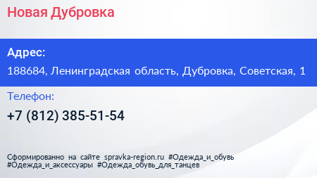 Новая Дубровка по адресу 188684, Ленинградская область, Дубровка, Советская, 1 в дальнейшем Организация, размещена в следующих категориях:
