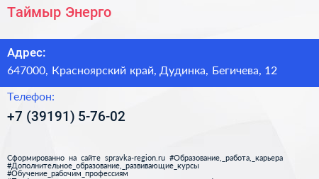 Таймыр-Энерго по адресу 647000, Красноярский край, Дудинка, Бегичева, 12 в дальнейшем Организация, размещена в следующих категориях: