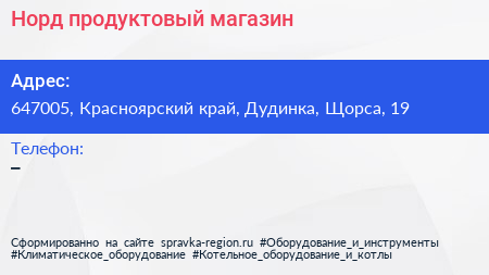 Норд, продуктовый магазин по адресу 647005, Красноярский край, Дудинка, Щорса, 19 в дальнейшем Организация, размещена в следующих категориях: