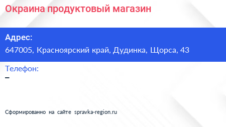 Окраина, продуктовый магазин по адресу 647005, Красноярский край, Дудинка, Щорса, 43 в дальнейшем Организация, размещена в следующих категориях: