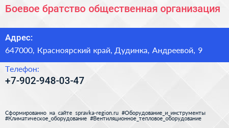 Боевое братство, общественная организация по адресу 647000, Красноярский край, Дудинка, Андреевой, 9 в дальнейшем Организация, размещена в следующих категориях: