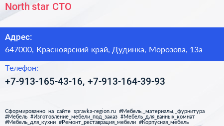 North star, СТО по адресу 647000, Красноярский край, Дудинка, Морозова, 13а в дальнейшем Организация, размещена в следующих категориях: