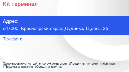 Kit, терминал по адресу 647000, Красноярский край, Дудинка, Щорса, 26 в дальнейшем Организация, размещена в следующих категориях:
