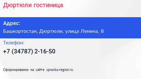 Дюртюли, гостиница по адресу Башкортостан, Дюртюли, улица Ленина, 8 в дальнейшем Организация, размещена в следующих категориях: