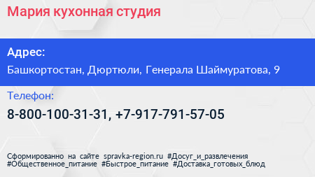 Мария, кухонная студия по адресу Башкортостан, Дюртюли, Генерала Шаймуратова, 9 в дальнейшем Организация, размещена в следующих категориях: