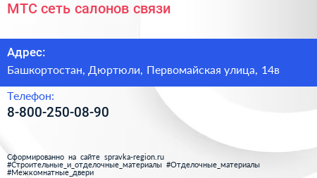 МТС, сеть салонов связи по адресу Башкортостан, Дюртюли, Первомайская улица, 14в в дальнейшем Организация, размещена в следующих категориях: