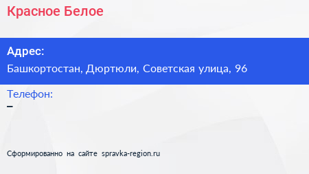 Красное & Белое по адресу Башкортостан, Дюртюли, Советская улица, 96 в дальнейшем Организация, размещена в следующих категориях: