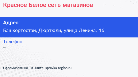 Красное & Белое, сеть магазинов по адресу Башкортостан, Дюртюли, улица Ленина, 16 в дальнейшем Организация, размещена в следующих категориях:
