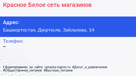 Красное & Белое, сеть магазинов по адресу Башкортостан, Дюртюли, Зайлалова, 14 в дальнейшем Организация, размещена в следующих категориях: