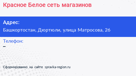 Красное & Белое, сеть магазинов по адресу Башкортостан, Дюртюли, улица Матросова, 26 в дальнейшем Организация, размещена в следующих категориях: