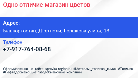 Одно отличие, магазин цветов по адресу Башкортостан, Дюртюли, Горшкова улица, 18 в дальнейшем Организация, размещена в следующих категориях: