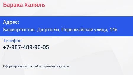 Барака Халяль по адресу Башкортостан, Дюртюли, Первомайская улица, 14в в дальнейшем Организация, размещена в следующих категориях: