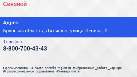 Связной по адресу Брянская область, Дятьково, улица Ленина, 2 в дальнейшем Организация, размещена в следующих категориях: