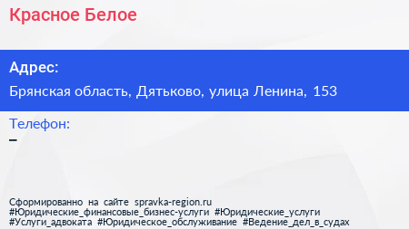 Красное & Белое по адресу Брянская область, Дятьково, улица Ленина, 153 в дальнейшем Организация, размещена в следующих категориях: