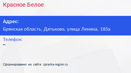 Красное & Белое по адресу Брянская область, Дятьково, улица Ленина, 185а в дальнейшем Организация, размещена в следующих категориях: