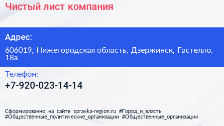 Чистый лист, компания по адресу 606019, Нижегородская область, Дзержинск, Гастелло, 18а в дальнейшем Организация, размещена в следующих категориях:
