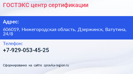 ГОСТЭКС, центр сертификации по адресу 606019, Нижегородская область, Дзержинск, Ватутина, 24/8 в дальнейшем Организация, размещена в следующих категориях: