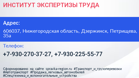 ИНСТИТУТ ЭКСПЕРТИЗЫ ТРУДА по адресу 606037, Нижегородская область, Дзержинск, Петрищева, 35а в дальнейшем Организация, размещена в следующих категориях: