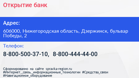 Открытие, банк по адресу 606000, Нижегородская область, Дзержинск, бульвар Победы, 2 в дальнейшем Организация, размещена в следующих категориях: