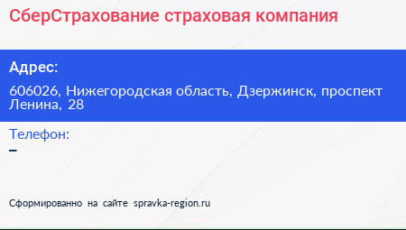 СберСтрахование, страховая компания по адресу 606026, Нижегородская область, Дзержинск, проспект Ленина, 28 в дальнейшем Организация, размещена в следующих категориях: