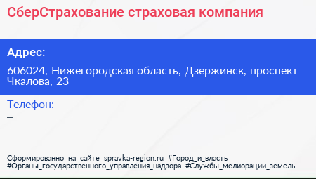 СберСтрахование, страховая компания по адресу 606024, Нижегородская область, Дзержинск, проспект Чкалова, 23 в дальнейшем Организация, размещена в следующих категориях: