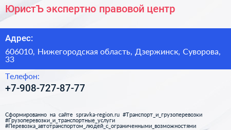 ЮристЪ, экспертно-правовой центр по адресу 606010, Нижегородская область, Дзержинск, Суворова, 33 в дальнейшем Организация, размещена в следующих категориях: