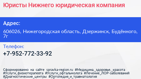 Юристы Нижнего, юридическая компания по адресу 606026, Нижегородская область, Дзержинск, Будённого, 7г в дальнейшем Организация, размещена в следующих категориях: