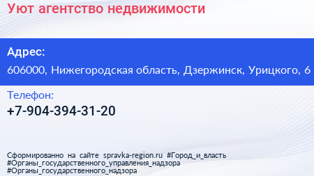 Уют, агентство недвижимости по адресу 606000, Нижегородская область, Дзержинск, Урицкого, 6 в дальнейшем Организация, размещена в следующих категориях: