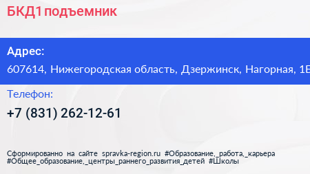 БКД1, подъемник по адресу 607614, Нижегородская область, Дзержинск, Нагорная, 1Б в дальнейшем Организация, размещена в следующих категориях:
