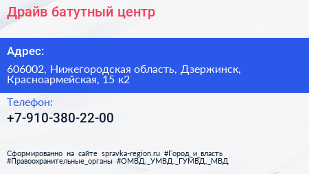 Драйв, батутный центр по адресу 606002, Нижегородская область, Дзержинск, Красноармейская, 15 к2 в дальнейшем Организация, размещена в следующих категориях: