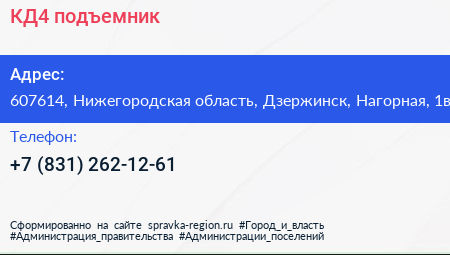 КД4, подъемник по адресу 607614, Нижегородская область, Дзержинск, Нагорная, 1в в дальнейшем Организация, размещена в следующих категориях: