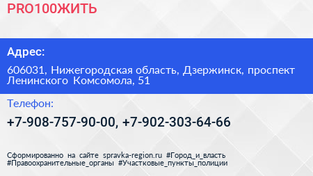 PRO100ЖИТЬ по адресу 606031, Нижегородская область, Дзержинск, проспект Ленинского Комсомола, 51 в дальнейшем Организация, размещена в следующих категориях: