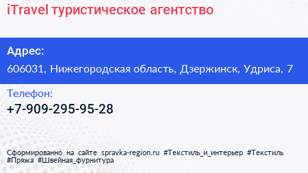 iTravel, туристическое агентство по адресу 606031, Нижегородская область, Дзержинск, Удриса, 7 в дальнейшем Организация, размещена в следующих категориях: