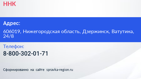ННК по адресу 606019, Нижегородская область, Дзержинск, Ватутина, 24/8 в дальнейшем Организация, размещена в следующих категориях: