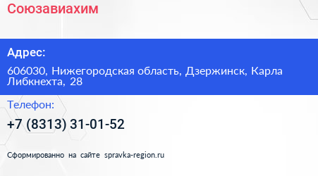 Союзавиахим по адресу 606030, Нижегородская область, Дзержинск, Карла Либкнехта, 28 в дальнейшем Организация, размещена в следующих категориях: