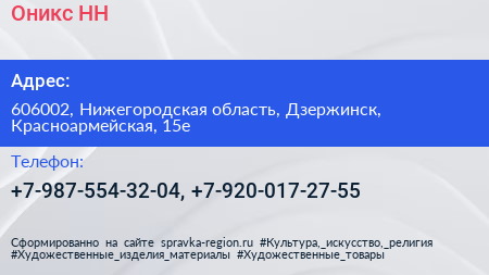 Оникс НН по адресу 606002, Нижегородская область, Дзержинск, Красноармейская, 15е в дальнейшем Организация, размещена в следующих категориях:
