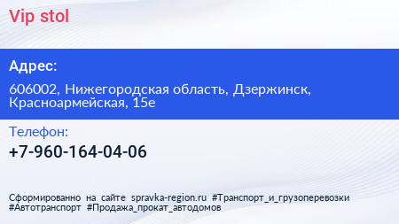 Vip-stol по адресу 606002, Нижегородская область, Дзержинск, Красноармейская, 15е в дальнейшем Организация, размещена в следующих категориях: