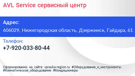 AVL Service, сервисный центр по адресу 606029, Нижегородская область, Дзержинск, Гайдара, 61 в дальнейшем Организация, размещена в следующих категориях: