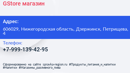 GStore, магазин по адресу 606029, Нижегородская область, Дзержинск, Петрищева, 4 в дальнейшем Организация, размещена в следующих категориях: