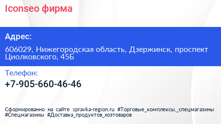 Iconseo, фирма по адресу 606029, Нижегородская область, Дзержинск, проспект Циолковского, 45Б в дальнейшем Организация, размещена в следующих категориях: