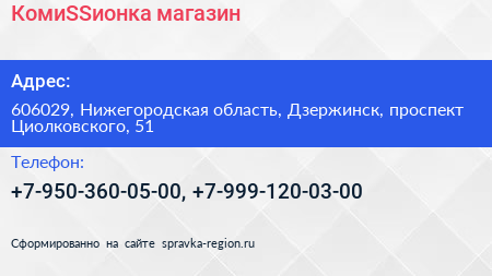 КомиSSионка, магазин по адресу 606029, Нижегородская область, Дзержинск, проспект Циолковского, 51 в дальнейшем Организация, размещена в следующих категориях: