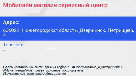 Мобилайн, магазин-сервисный центр по адресу 606029, Нижегородская область, Дзержинск, Петрищева, 4 в дальнейшем Организация, размещена в следующих категориях: